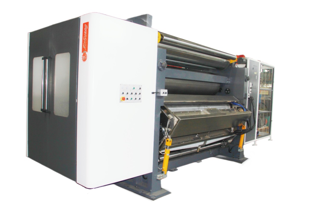 The glue quantity is adjusted automatically, The adhesive separation device is electric and can move correspondingly with the core paper light curtain detection system to make sure the glue position is exact correct. When we turn off the single facer, the glue system can work separately to avoid the glue to be dry. The glue system adopts wave arm type, easy for cleaning, and easy to maintenance and repair.